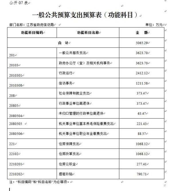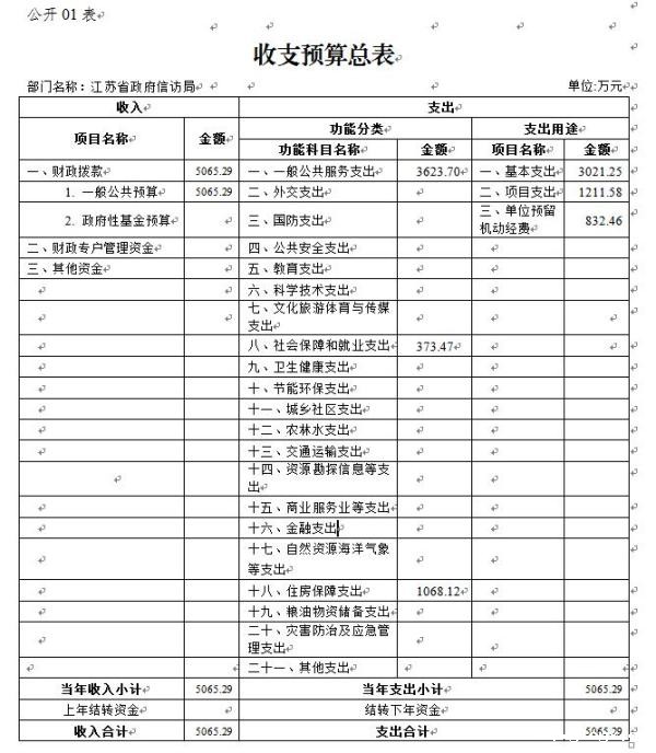 江苏省政府信访局本年支出预算合计5065.29万元,其中: