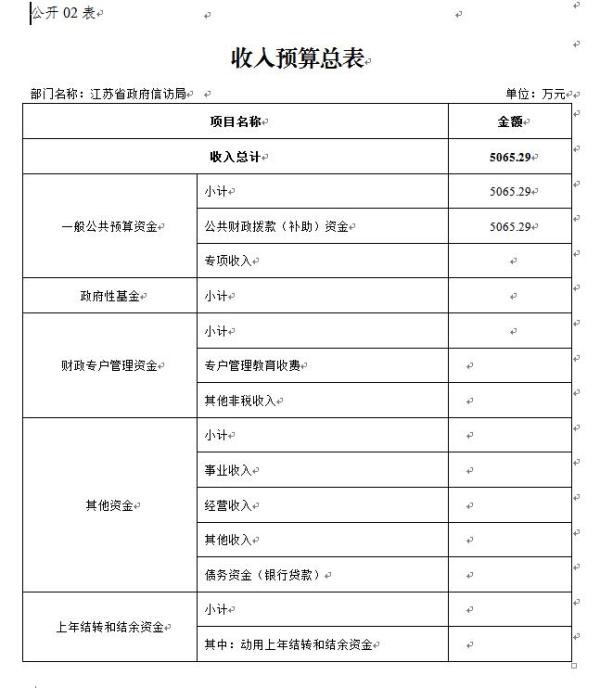 江苏省政府信访局本年收入预算合计5065.29万元,其中: