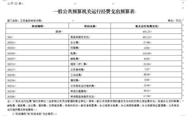 (二)公用经费401.25万元。主要包括:办公费、水费、电费、邮电费、维修(护)费、公务接待费、工会经费、福利费、公务用车运行维护费、其他交通费用、其他商品和服务支出。