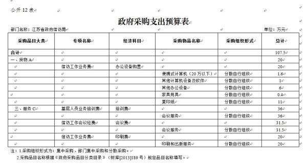 十二、政府采购支出预算表