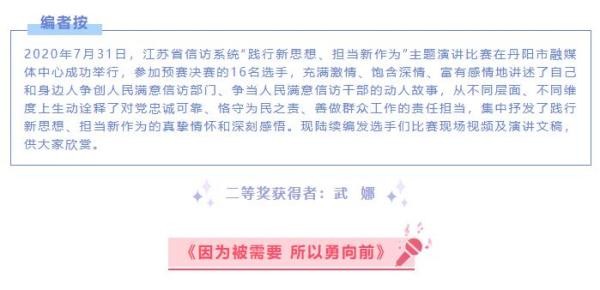 大家下午好!我是来自徐州邳州市车辐山镇信访办武娜,今天我演讲的题目是《因为被需要,所以勇向前》。