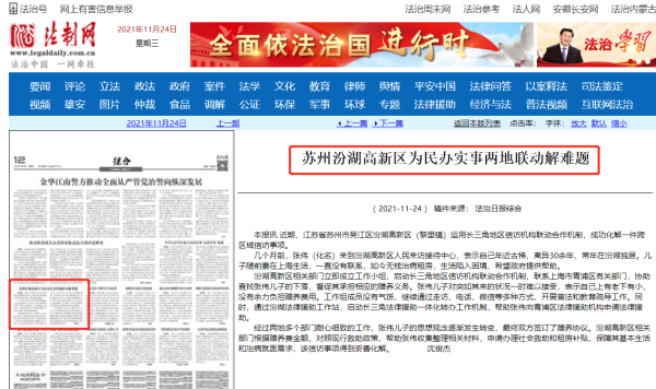 《法治日报》苏州汾湖高新区为民办实事两地联动解难题