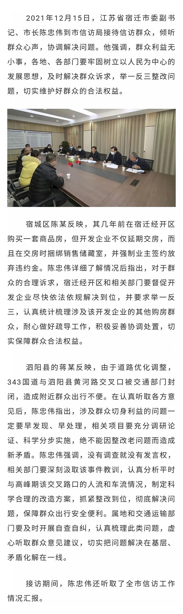 宿迁市市长陈忠伟接待信访群众