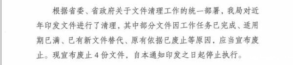 根据省政府信访局2021年2月25日相关通知要求,决定对4份文件自通知之日起停止执行。