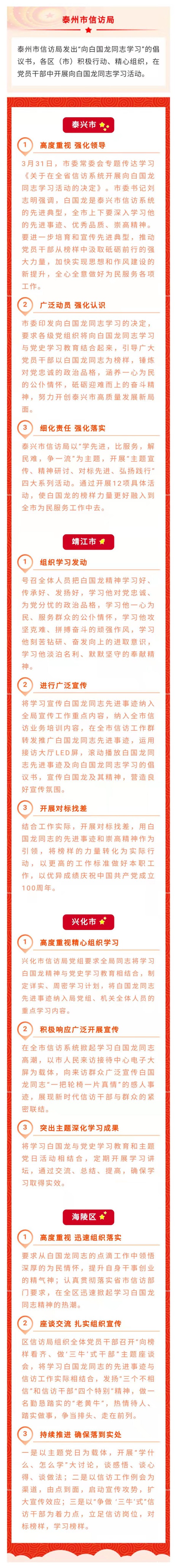 【寻找最美信访干部】无锡、泰州市掀起向白国龙同志学习热潮
