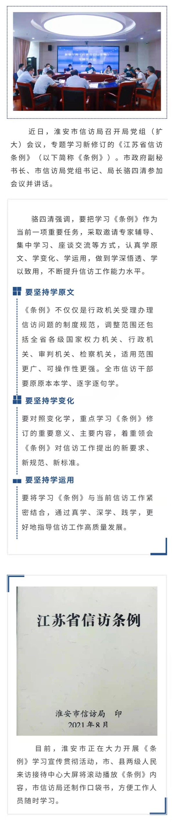 淮安市信访局专题学习新修订的《江苏省信访条例》