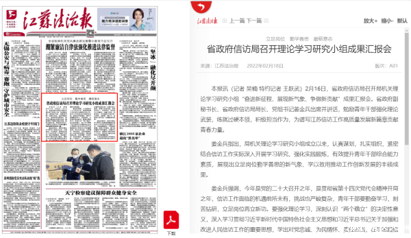 本报讯(记者吴楠特约记者王跃武)2月16日,省政府信访局召开局机关理论学习研究小组“奋进新征程、展现新气象、争做新贡献”成果汇报会。省政府副秘书长、省政府信访局局长、党组书记姜金兵出席并讲话,勉励青年干部强化理论武装,练就过硬本领,积极担当作为,为谱写江苏信访工作高质量发展新篇章贡献青春力量。