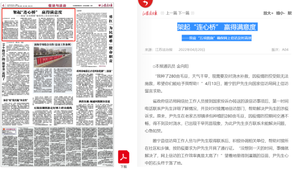 网上信访为人民群众架起了一座“连心桥”,赢得了群众的“满意度”。截至目前,全省网上共办理涉及小区封控、交通出行、教育就医等群众涉疫信访事项2776件,做到了100%及时受理、100%按期办结、群众90%以上满意。