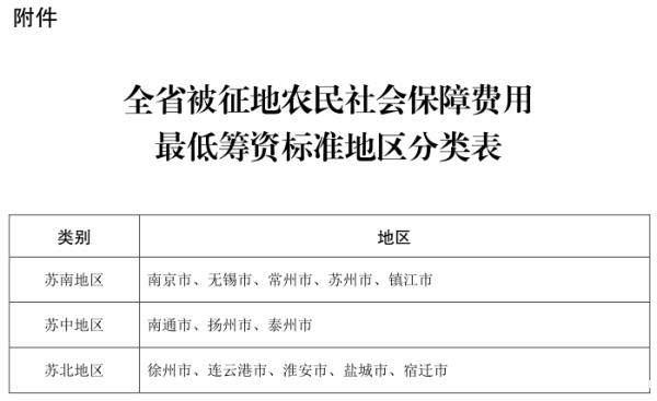 第九条 各地根据苏南、苏中、苏北三类地区的划分,分别确定社会保障费用的最低筹资标准。