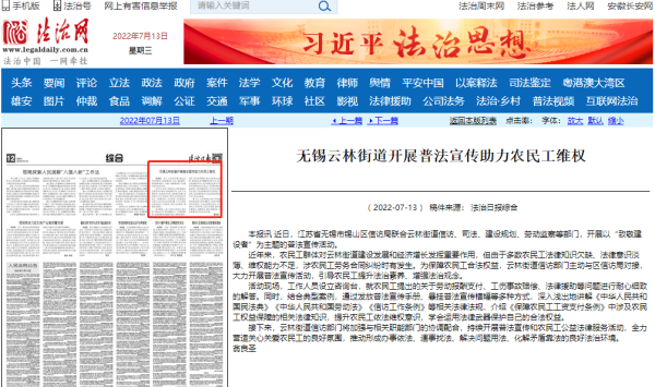 接下来,云林街道信访部门将加强与相关职能部门的协调配合,持续开展普法宣传和农民工公益法律服务活动,全力营造关心关爱农民工的良好氛围,推动形成办事依法、遇事找法、解决问题用法、化解矛盾靠法的良好法治环境。