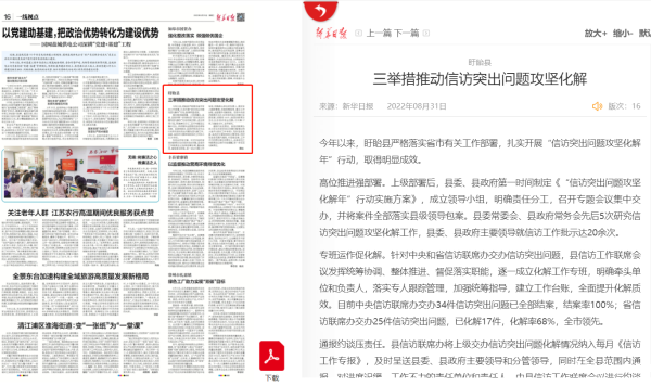 今年以来,盱眙县严格落实省市有关工作部署,扎实开展“信访突出问题攻坚化解年”行动,取得明显成效。