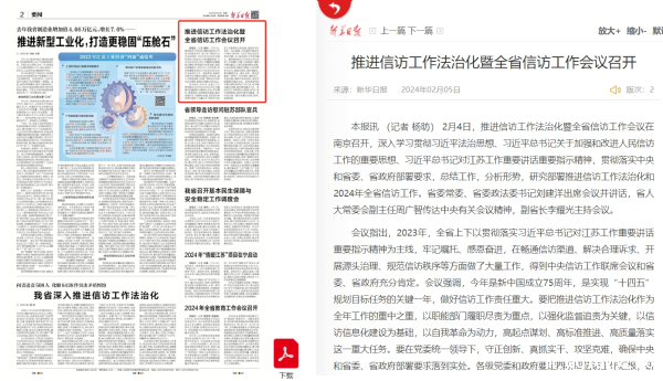 《新华日报》推进信访工作法治化暨全省信访工作会议召开